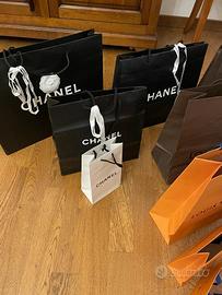 Tredici borse in carta e una scatola della marca Louis Vuitton, e quattro borse della marca Chanel. In diversi colori e misure. Stato di utilizzo come si vede nelle foto.