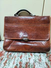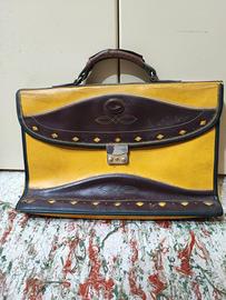 Borse da lavoro in cuoio una di colore nero una di colore cuoio e una di colore giallo con profili marroni