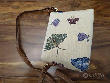 -N.1 Borsa a tracolla in tessuto di medie dimensioni, colore bianco, marca Signare, NUOVA, con ricamo a farfalle (25 euro)