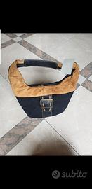 1 borsa in camoscio marrone chiaro-nera con parti in ecopelle.