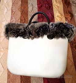 1 borsa grigio chiaro con manici neri e bordo di pelliccia rimovibile