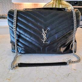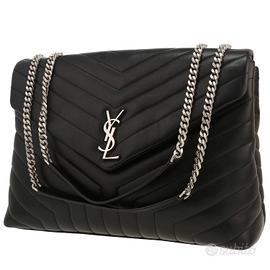 Logo e hardware: Presenta l'iconicomonogramma YSLin metallo intrecciato sulla patta frontale. L'hardware, inclusa la catena, è in finitura argentata, come si vede nell'immagine, ma esiste anche in color oro.