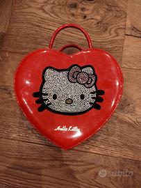 borsa a forma di cuore, per bambina o meno bambina, con hello Kitty tutta di strass, si può portare a mano o a tracolla (munita di tracolla)