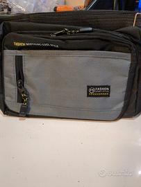 La borsa mostrata nell'area selezionata è unaborsa a tracolla da uomo(o borsa messenger) in stile casual e sportivo. Si tratta di un modello multitasche realizzato in materiale sintetico resistente, come il nylon impermeabile o il tessuto Oxford. Caratteristiche Principali Design:Presenta un'estetica moderna con un pannello frontale a contrasto grigio e scritte decorative come "Fashion Nostalgic Cool Style" e "FS Fashion Sport Style". Organizzazione:È dotata di numerosi scomparti con cerniera, tra cui una tasca principale spaziosa e diverse tasche frontali per piccoli oggetti. resistente all'acqua e leggera, ideale per l'uso quotidiano o i viaggi. Versatilità:Include una tracolla regolabile non staccabile per essere indossata a spalla o trasversalmente.