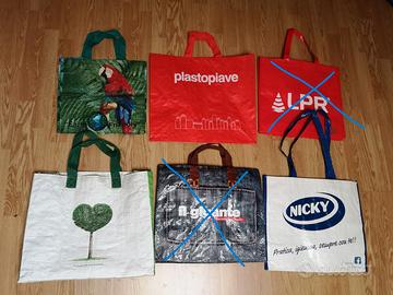 2 euro quelle in plastica e 1 euro quelle in tela (ultime 3 foto e borse blu terza foto).