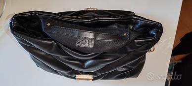 Vendo 2 borse donna a tracolla in ottimo stato di cui una di Antonello Serio nero-dorata con tracolla regolabile e zip interna, l altra marca Zara nera tracolla a catena dorata zip interna.