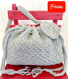 È una bucket bag. Elegante, moderna, nera valorizzata dal lurex argento, portabile tutto l'anno, con un'unica tracolla corta e comoda chiusura a laccio. Dimensioni 30x29.