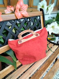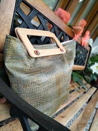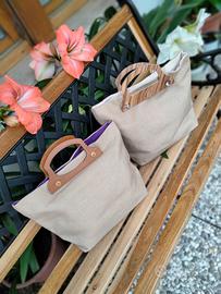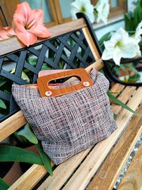 Ogni borsa è un pezzo unico, tessuto 100% italiano. I manici in legno sono fatti a mano .