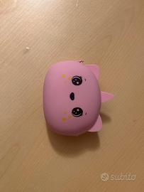 Borsellino rosa con stelline gialle sulle guance a forma di gatto con il corno. Una tasta ad ampio spazio.