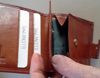 Borsellino Lancetti in vera pelle piccolo, pratico, funzionale. Non ho più la sua scatola, ma è rimasto nuovo, inutilizzato ancora con i suoi cartellini interni.