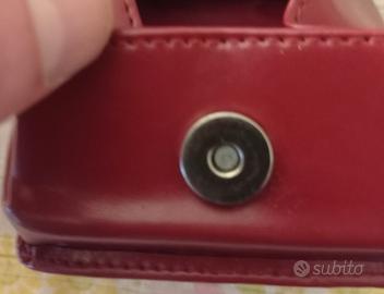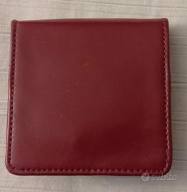 Portamonete in similpelle, pratico e compatto in similpelle marrone con chiusura a scatto tramite clip in metallo,le dimensioni sono: 8 cm. (Circa) * 8 cm. (Circa) * 4 cm. (Di profondità quando è aperto). Il borsellino è stato usato per un breve periodo ma risulta ancora in buone condizioni.