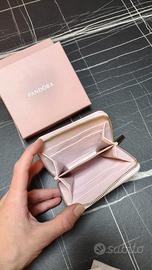 Di un delicato color rosa in similpelle lavorata con dettagli color argento.