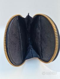 Borsellino portamonete con cerniera e due scomparti interni, marca Versace Jeans. Forma circolare, con logo e borchie sulla parte frontale.