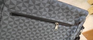 Vendo bellissimo borsello a tracolla acquistato da "Zara", caratterizzato da una elegante trama geometrica grigia e nera. L'articolo è integro e intatto, pari al nuovo, senza alcun segno di usura (come si può vedere in foto) né all'esterno né all'interno. Ottime condizioni (usato 3/4 volte). Chiusura magnetica, tasca interna ed esterna con zip e tracolla rinforzata regolabile in stile moderno e versatile, ideale per tablet documenti oppure uso Quotidiano. Misure 8 cm x 27 cm x 30 cm