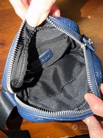 Vendo borsello/tracolla originale Guess per uomo, nuovo e mai utilizzato, in condizioni perfette (ancora come appena uscito dal negozio). • Colore: blu navy elegante e versatile • Materiale: ecopelle di alta qualità con pattern embossato all-over “Quattro G” (il classico logo Guess a rombi) • Grande logo “GUESS” bianco in rilievo sul fronte, molto visibile • Zip principale con charm metallico “GUESS” • Tracolla nera regolabile e removibile con fibbie metalliche • Interno spazioso in tessuto grigio scuro con tasche organizzate e etichetta Guess originale • Dimensioni compatte ma pratiche (ideale per telefono, portafoglio, chiavi e oggetti quotidiani) Perfetto per look casual, viaggio o uso giornaliero. Stile Milano / Quattro G, 100% autentico. Prezzo: 75 € (leggermente trattabile per pagamento immediato o ritiro)