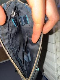 Borsello a tracolla Piquadro piatto di colore blu, linea Blue Square. Usato ma in ottime condizioni Misure: altezza 25 larghezza 22 profondità 2