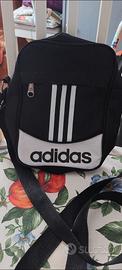 Borsello Adidas con design a tre strisce. - Colore principale nero. - Dettagli bianchi sul davanti. - Logo Adidas ben visibile.