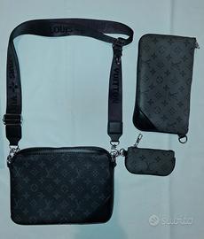 Borsello LV con monogram nero e grigio pochette staccabile porta monete tutto con chiusura zip fascia a Tracolla regolabile