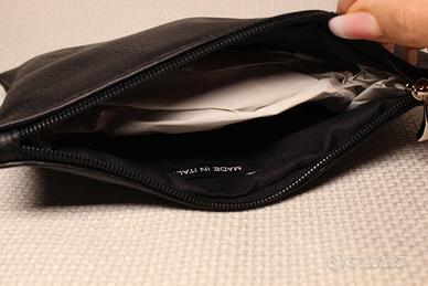 realizzato in vera pelle colore nero con cerniera e cinturino.