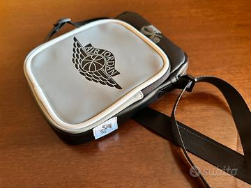 Vendo Borsello Nike AirJordan ragazzo in pelle nero-grigio con 2 scomparti a cerniera e tracolla regolabile misure 20x25 nuovo causa regalo non gradito.