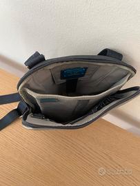 Borsello Piquadro da uomo in pelle, colore blu, chiusura con cerniera ,1 tasca anteriore e 1 tasca posteriore con cerniera, organizer interno, tracolla regolabile, indossabile come monospalla o tracolla, dimensioni H 27 L24 P4