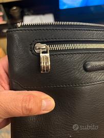 Bellissimo borsello in pelle nera della Piquadro. L'ho comprato qualche anno fa ma l'ho usato pochissimo. Ha una tasca esterna con la lampo e due interne di cui una con la lampo e una più piccola con lo strappo. Ha un portachiavi interno staccabile molto pratico