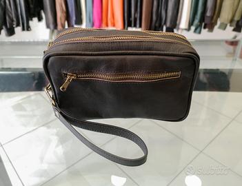 Borsello da polso per uomo in vera pelle ovina resistente, colori disponibili nero, marrone e cuoio, 100% Made in Italy, no ecopelle, no sintetico!