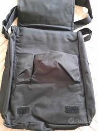 Vendo borsello uomo impermeabile a tracolla colore nero/marrone come da foto, con capiente vano interno e due taschine portaoggetti sul davanti , nuovo, misure ca 38x28x5.