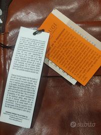 Realizzata a mano in Italia in vera pelle è dotata di una tracolla regolabile marrone scuro sempre in vera pelle.