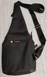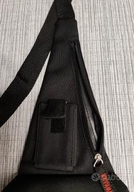 Sul monospalla: 1 tasca con cerniera (lo spazio interno è su tutta la lunghezza del borsello) e 1 taschino chiuso con velcro.
