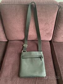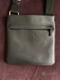Bellissimo borsello uomo in pelle nera di Furla; chiusura con zip, tasca interna, tasca esterna.