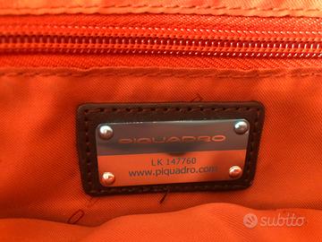Borsello da uomo a tracolla. Piquadro - mod. LK147760. In tessuto marrone ed inserti in pelle, interno in tessuto arancio. Vari scomparti con cerniere. Misure: 30x23 cm circa. Usato solo due volte. In buonissimo stato. P.s.: puo’ andar bene anche da donna.