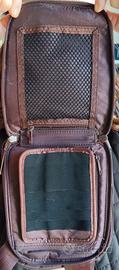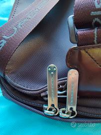 Borsello uomo Piquadro colore marrone cioccolato in Canvas e inserti in pelle. Misure altezza cm 22 larghezza cm 16 profondità cm 4/5 vuoto. 2'tasche con all'interno vari scomparti com porta chiavi , porta penne, porta cellulare e porta carte di credito. Completo di custodia originale celeste e tracolla allungabile. Per ritiro a mano zona Piazza Bologna, Roma.