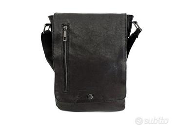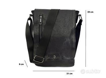 Borsello a tracolla per uomo, stile postina messenger, in vera pelle ovina lavata, colore nero opaco, 100% Made in Italy, no ecopelle, no sintetico!