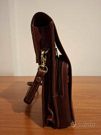 Borsello vintage con tracolla unisex, marca Tony Perotti, in pelle naturale color cognac. Dotato sul davanti di due tasche esterne con zip e finestra trasparente, nella parte posteriore ha una comoda tasca con cerniera per proteggere portafogli e documenti. Il borsello, in condizioni davvero eccellenti, si chiude con una patta a bottone calamitato ed é dotato di un pratico passante per indossarlo con la cintura in alternativa alla comoda tracolla regolabile. Le misure sono cm 22 x 16 x 8. Garantisco spedizione immediata al ricevimento dell'etichetta.