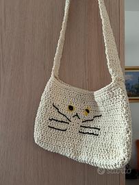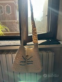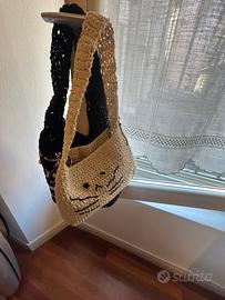 Borseta tracolla di recycled cotton fatto a mano co uncinetto.