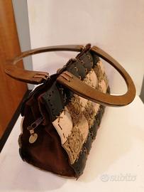 Si tratta di un esemplare unico di borsetta a mano realizzata da un artigiano Tailandese e proveniente dalla Tailandia. Le dimensioni sono 28x16x11cm. Il materiale è cocco intagliato e il manico in legno duro.