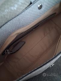 Graziosa borsa a mano e con tracolla in vera pelle di caterina lucchi. Misure larga 25 alta 18 e profonda circa 15. Integra, usata 2 o 3 volte. Lavorazione tipo serpente . Tasca interna con zip e tasca per cellulare. Il colore è grigio , verde salvia .
