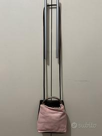 Borsetta piccola ma spaziosa di colore rosa chiaro e marrone, possiede segni di usura ma solo esclusivamente nel manico di ferro è larga 9 cm, di lunghezza è 17 cm e di altezza 17 cm contando anche il manico di ferro diventa di 20 cm, possiede tracolla in similpelle di color marrone e manico di ferro al centro della borsetta, chiusura a bottone, usata qualche volta è considerabile in buono stato sia all'interno sia all'esterno, disponibile per ritiro e consegna a carico dell’acquirente, se bisogno per maggiori informazioni consultate le foto oppure contattatemi.