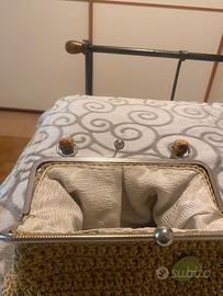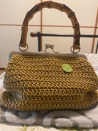 Poscette all uncinetto foderata color beige brillante . Comoda da passeggio e poco ingombrante tessuto di cordino morbido.