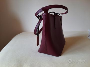 Vendo BORSETTA ALDO di colore bordeaux, da usare a tracolla (altezza manici cm 25) o a mano, adoperata una sola volta per un matrimonio insieme alle scarpe (come da immagine). Rigida, di materiale sintetico e chiusura con cerniera.