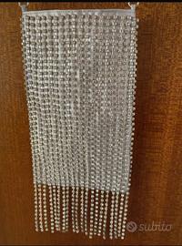 Completamente ricoperta di strass argentati con frange pendenti che donano un tocco glamour.