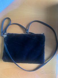 Borsetta a tracolla in pelliccia sintetica ricamata con api e , mai usata larghezza 28 cm h cm 20 materiale poliestere