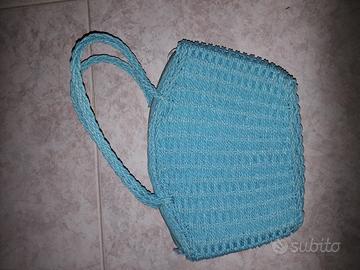 borsetta bambina turchese con manici e cerniera, applicazione feltro davanti