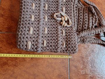 borsetta fatta a mano con l' uncinetto colore grigio/ marrone nuova