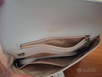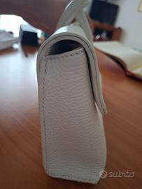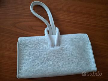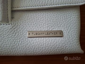 Vendo borsetta Tuscany Leather 24x14 cm (capienza circa 5 cm), usata solo nel giorno del mio matrimonio, bianca in cuoio 100%, fatta a mano a Firenze, con tracolla eventuale e copri-borsetta per conservarla.