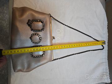 Borsa borsetta bianco ghiaccio originale Orciani con catena, da portare a mano, spalla o tracolla