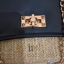 Borsa Chic in Stile Moderno Questa elegante borsa combina pelle nera e tessuto intrecciato. con una chiusura dorata che aggiunge un tocco di lusso. La tracolla in catena offre versatilità e comfort, rendendola perfetta per ogni occasione. dal brunch a una serata elegante. Un accessorio essenziale per ogni donna!
