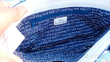 Borsetta Tua Braccialini sfondo blu con cuoricini bianchi senza tracolla usata con qualche segno di usura,per il resto in discrete condizioni.Per gli altri annunci digitare SPQR in prov di Asti.