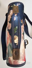 Motivo floreale con tracolla e manico blu.